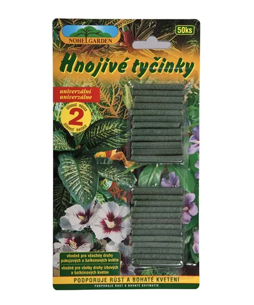 Hnojivé tyčinky sú vhodné pre všetky druhy izbových a balkónových kvitnúcich aj vždyzelených rastlín. Zaisťujú rovnomerný a vyvážený prísun živín, podporujú rast a bohaté kvitnutie. Zvyšujú odolnosť rastlín proti chorobám, škodcom a nepriaznivým pestovateľským podmienkam. Napomáhajú vytvárať aj drobovitú štruktúru pôdy a zlepšujú tak fyzikálne vlastnosti pôdy. V balení je 50 tyčiniek.